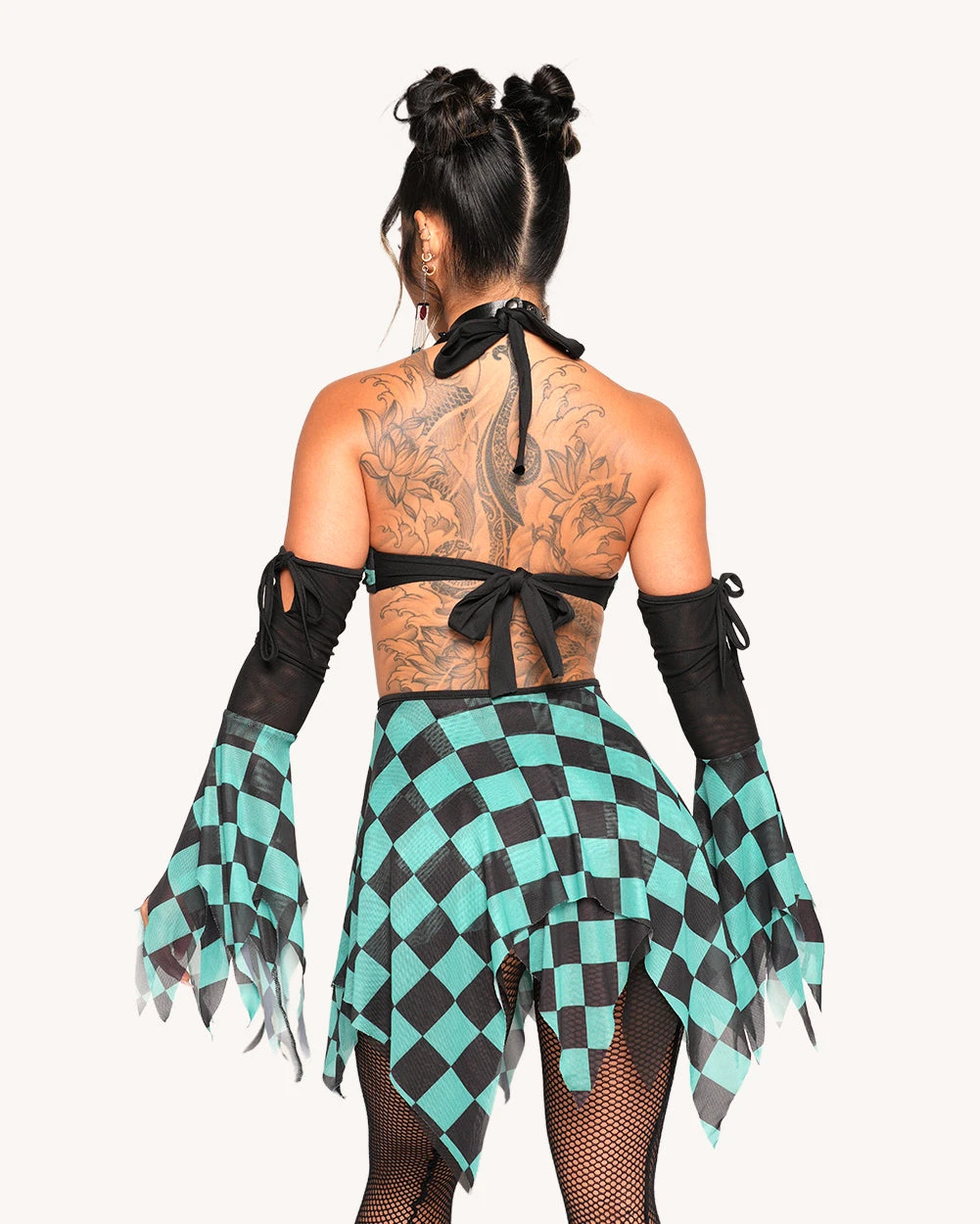 Slay demons and dance floors with the Demon’s Mercy Mesh Dress with Sleeves! With a pattern inspired by Tanjiro’s iconic haori and ethereal sleeve drapes that flow like a final form, this look channels main character energy from sunrise to final battle.