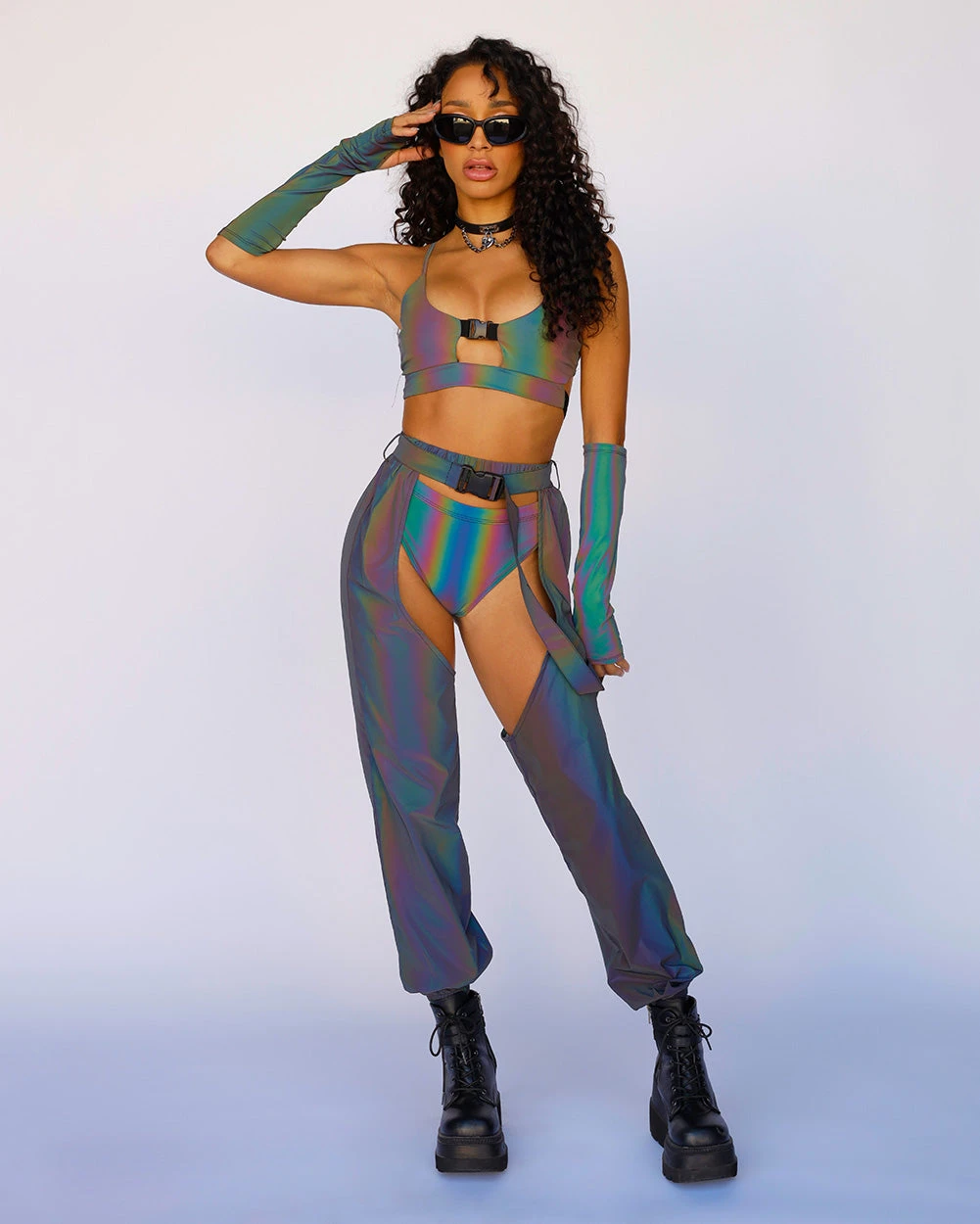 The Won’t Let U Out Reflective Underboob Clasp Top gives the basic bralette an unexpected twist. It features skinny straps and is accented with an underboob speed clasp.